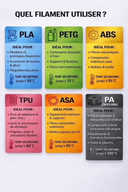 Merci de préciser le choix du filament* pour les réalisations personnel ou les objets décoratifs.