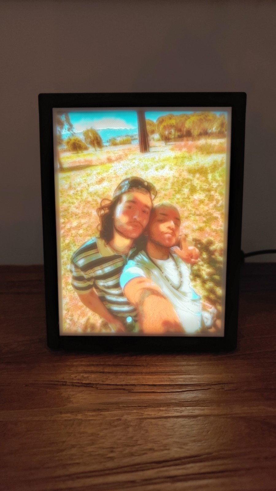 Le cadre (couleur au choix) + plaque Led + cable usb on/off + 1 photo