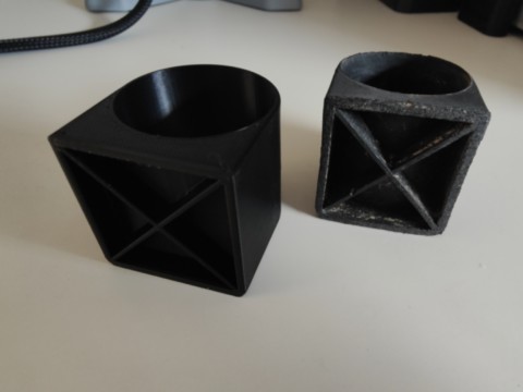 Modélisation et impression 3D de pièds réglable pour stabiliser les table du restaurant La Cafetière Fêlée à Antibes.